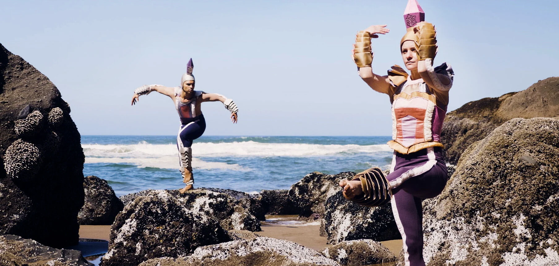 The epic struggle of fire and water encapsulated in mythology, dance, costumes and nature. Future Cosmos Flow is a mythic origin story during a futuristic past of climate crisis that brings hope and inspiration.